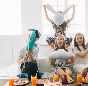 Desde cumpleaños hasta bodas o comuniones, nos encargamos de todo: animación, juegos, talleres, decoración y cuidado de menores.